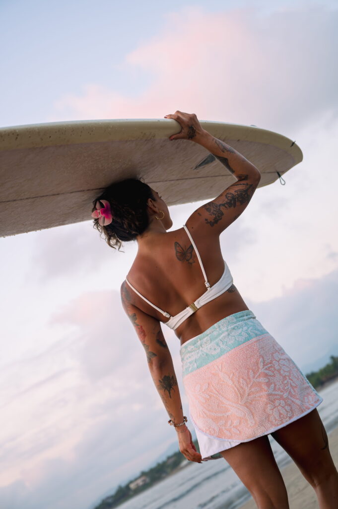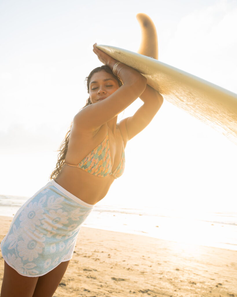 Surf culture and coastal living were at the heart of this project. From sandy paths to ocean views, we captured the essence of freedom, movement, and summer energy. These lifestyle shots reflect how the pieces naturally fit into beach life and travel.
